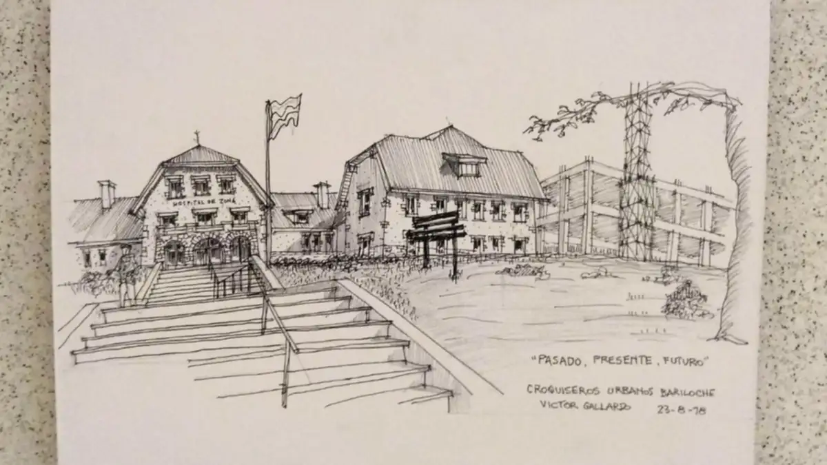 Foto: La histórica estación de trenes de Bariloche hecha croquis