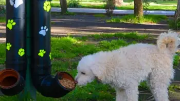 Patricio quiere seguir haciendo estos comederos, por el momento hizo ocho, cuatro para comida y cuatro para agua, esto permite que el agua que tomen los perros esté limpia y el alimento permanezca seco. Queda sostenido en un poste o un árbol, y cualquiera que quiera colaborar puede reponer los tubos que tienen una capacidad para 10 kilos de alimento aproximadamente.