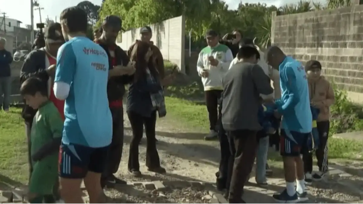 El equipo de Filipe Luís fue recibido por una multitud de vecinos que se acercaron al lugar en busca de una foto o un autógrafo, y entre ellos destacó un hincha de Independiente que se robó todas las miradas.