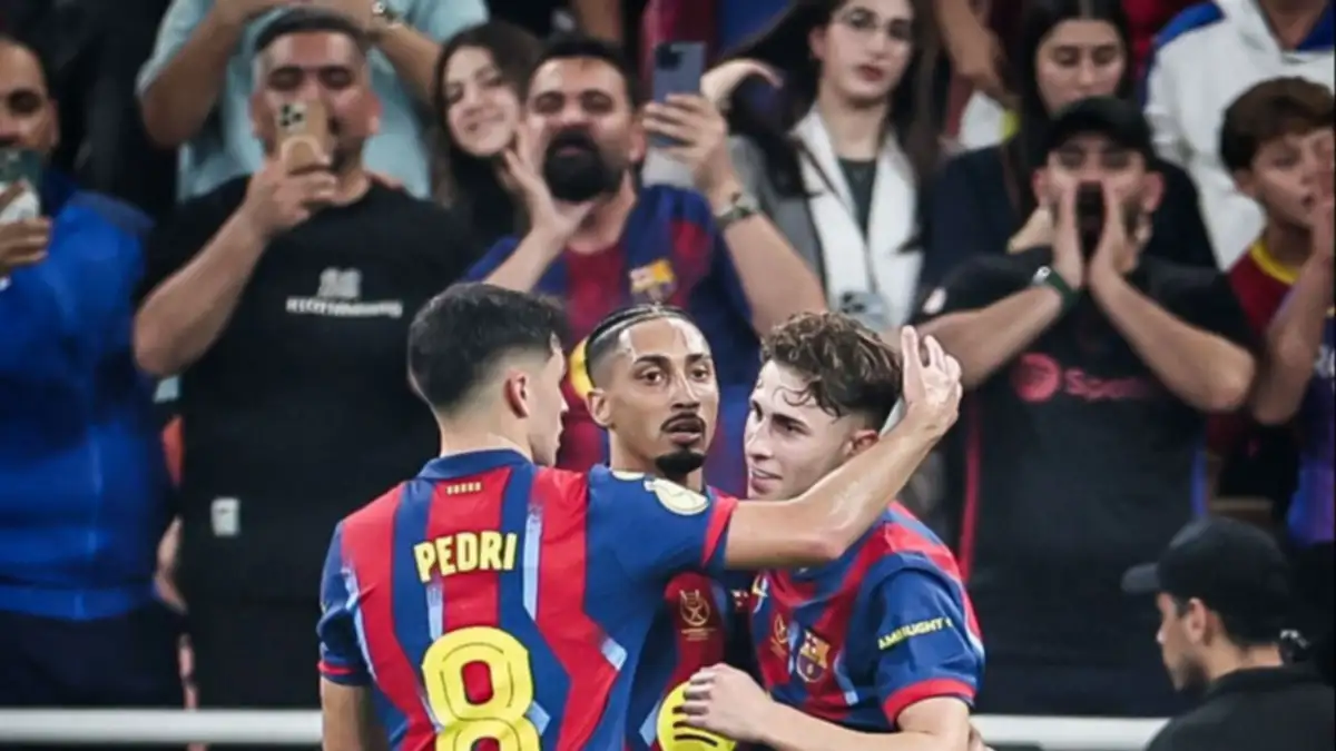 Se disputa el primer título del 2026 entre equipos españoles y Barcelona goleó sin atenuantes por 5-0 a Athletic Bilbao en la primera semifinal de la Supercopa de España en el estadio King Abdullah de Yeda, en Arabia Saudita. El elenco culé, que tuvo a Lamine Yamal fuera del equipo titular por una molestia muscular, no tuvo problemas en superar al conjunto vasco con tantos de Ferrán Torres, Fermín López, Roony Bardghji y un doblete de Raphinha. Ahora, espera por Real Madrid y Atlético Madrid, que jugarán mañana.