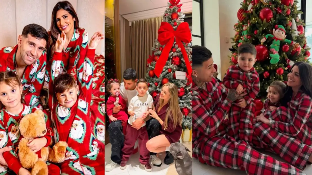 Con el árbol navideño de fondo, las clásicas producciones de Emiliano “Dibu” Martínez, Cristian Romero, Enzo Fernández y Walter Benítez; se muestran con sus familias, vestidos con la misma indumentaria.