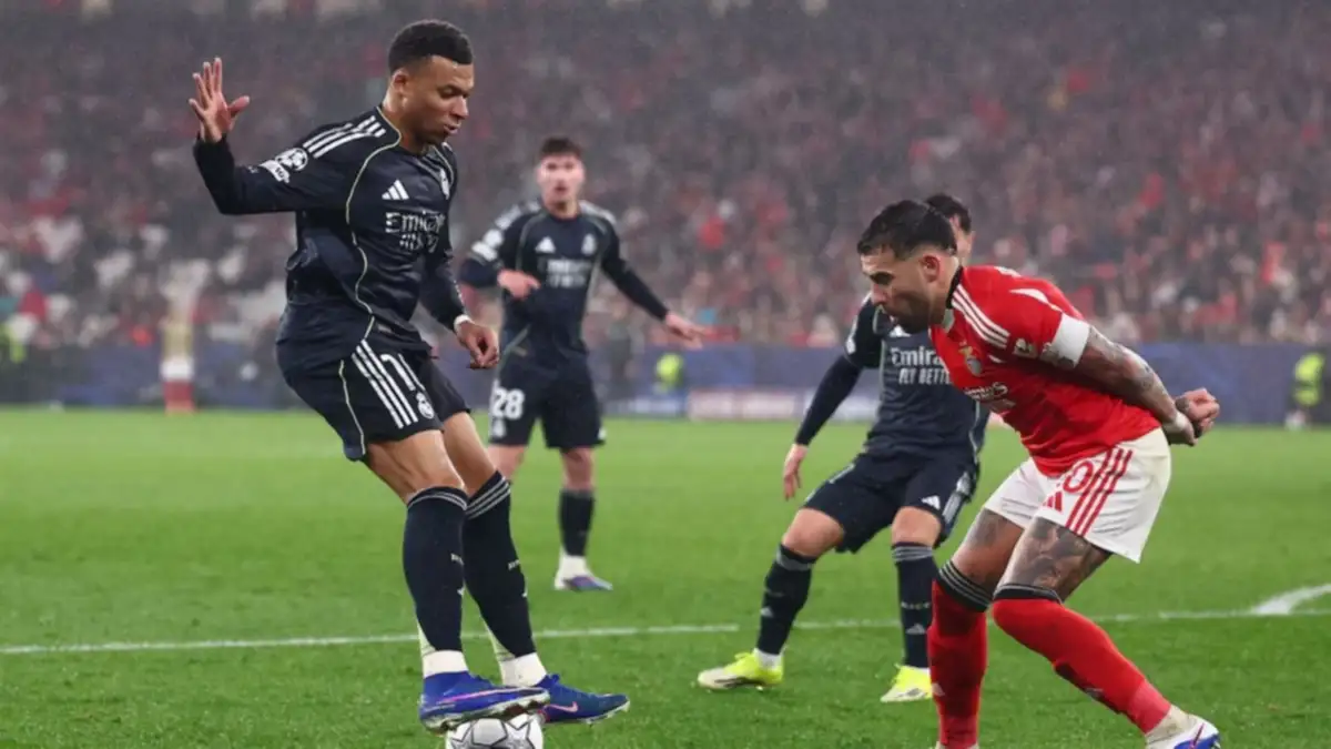 En el duelo más llamativo de la jornada, el Real Madrid visita al Benfica en el partido de ida de los playoffs de acceso a los octavos de final de la Champions League. El duelo tendrá lugar en el Estadio Da Luz y aparece como la chance de una revancha para el Merengue, que cayó en esta instancia luego de perder con las Águilas por 4-2 en este mismo recinto por la última jornada de fase liga. Franco Mastantuono será suplente en la Casa Blanca, en tanto que Nicolás Otamendi (capitán) y Gianluca Prestianni irán de arranque en los lusos. Por ahora, es empate sin goles.