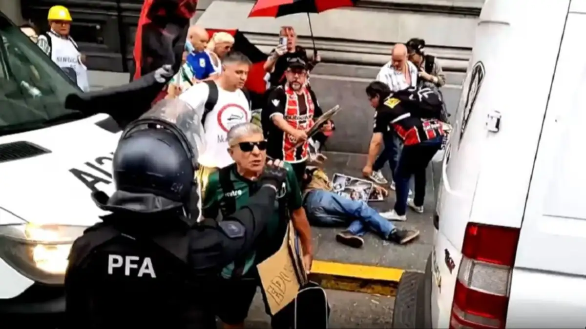 El operativo incluyó un amplio despliegue de efectivos y la colocación de vallas sobre la avenida Rivadavia para limitar la circulación, manteniendo a los manifestantes detrás de las barreras móviles. La tensión se intensificó sobre la avenida Hipólito Yrigoyen, cuando un hombre mayor fue empujado por un policía al intentar bajar a la calle, provocando que cayera al suelo y generando forcejeos momentáneos.