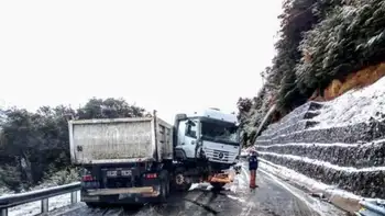 El hecho ocurrió esta mañana, en el Km 2152 de la ruta 40. Tal como puede verse en la imagen tomada minutos después del accidente, había presencia de nieve en la calzada y ese podría haber sido uno de los motivos que originó el accidente.