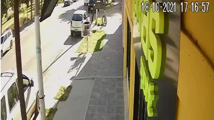 Aportó el video de una cámara de seguridad que muestra el momento en el que el conductor del automóvil negro se detiene en dos oportunidades “para esperar a mi hijo que iba caminando”.