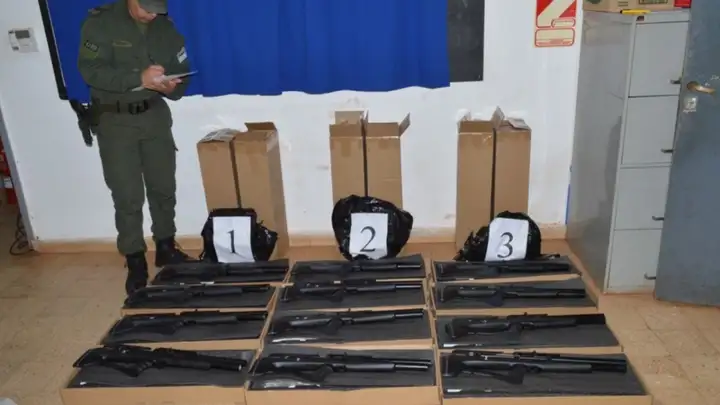 El juez interviniente dispuso el secuestro de las armas y el labrado de actuaciones por infracción a la ley 22.415 del “Código Aduanero” (contrabando).