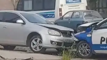 Un violento accidente sorprendió a los vecinos del barrio La Sirena este martes por la tarde, cuando una camioneta Toyota impactó contra un patrullero en la intersección de las calles Soldado Desconocido y Ceferino Namuncurá, alrededor de las 16. La fuerza del choque hizo que el móvil policial terminara colisionando contra un Volkswagen Vento, que a su vez embistió otros dos autos estacionados.