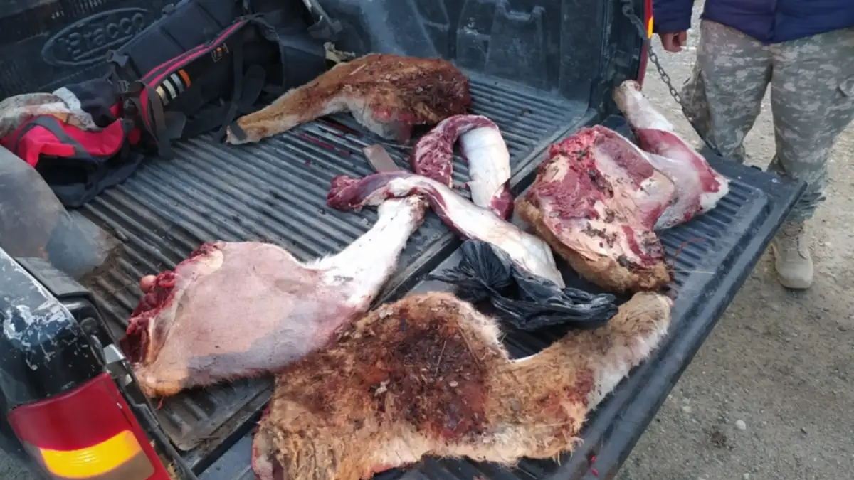 El procedimiento se desplegó en la zona norte del área protegida, con participación de guardaparques de la Seccional Limay. Allí, los agentes hallaron a un grupo de personas oriundas de la región que se encontraban despostando el cuerpo de un guanaco, una de las especies más emblemáticas de la fauna patagónica, en pleno territorio protegido.