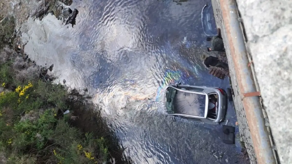 Según los primeros datos, el auto circulaba en sentido sur-norte cuando, por causas que aún se investigan, el conductor perdió el control. El despiste fue violento y terminó con el rodado fuera de la cinta asfáltica, sumergido parcialmente en el agua. La escena, dramática y cargada de tensión, obligó a una rápida intervención de los efectivos.