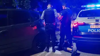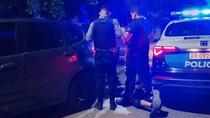 Desde el parabrisas se veía la culata de una escopeta. Cuando les pidieron que bajaran, sacó un cuchillo y le cortó la frente a un policía.