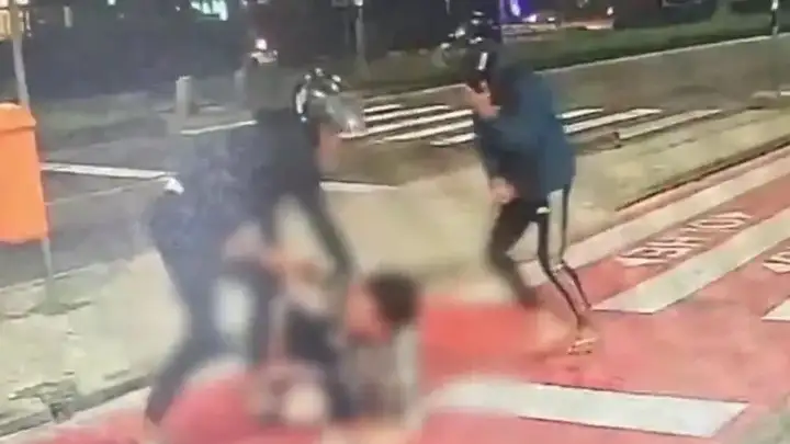 Según se observa en las imágenes, tres motochorros que circulaban en dos motocicletas interceptaron a la víctima mientras caminaba por la vía pública.