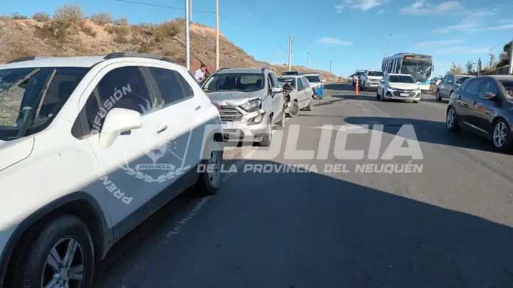 Un choque en cadena registrado este martes por la tarde provocó demoras y largas filas de vehículos en uno de los principales accesos entre Neuquén y Cipolletti. El hecho ocurrió pasadas las 17 sobre la colectora de la Avenida Raúl Alfonsín, en dirección al Tercer Puente.