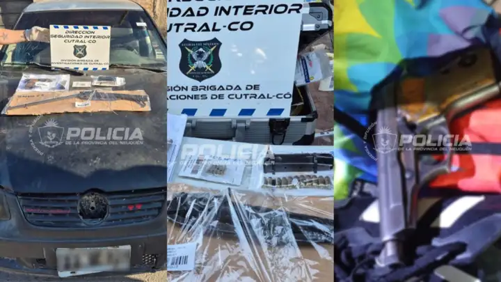 Durante los operativos, la Policía incautó un arma de fuego calibre 22 con cargador y cartuchos, municiones calibre 22 y 380, un cargador metálico, un tubo de arma de hombro, un Volkswagen Gol y una gorra tipo visera. Tanto el demorado como los objetos quedaron a disposición de la Fiscalía de Cutral Co.
