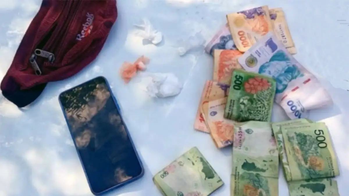 Dentro de una riñonera, los policías hallaron un envoltorio mediano y tres más pequeños con una sustancia blanquecina en estado sólido, cuidadosamente envueltos en bolsas de distintos colores. Se trataba de dosis de cocaína listas para ser comercializadas. Como si fuera poco, en el bolsillo del pantalón corto del detenido había 20 mil pesos en efectivo, un detalle que refuerza la sospecha de que se trataba de dinero proveniente de la venta de estupefacientes.