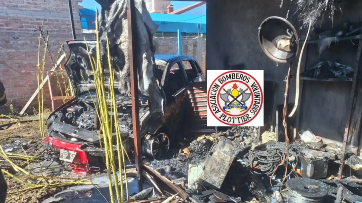 Según se informó, el fuego afectó gran parte del vehículo y alcanzó el techo de la vivienda, aunque gracias a la intervención de los bomberos se evitó que el incendio se extendiera aún más.