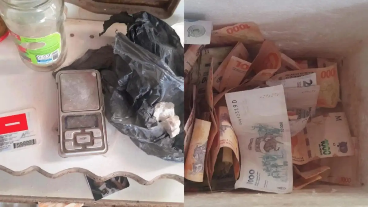 En uno de los inmuebles se encontraron 54 municiones calibre 9 milímetros, una caja vacía de calibre 22 y una moto tipo enduro con pedido de secuestro vigente por robo. Además, se incautaron cerca de 360 mil pesos en efectivo, una balanza de precisión y 184 gramos de cocaína, cuyo resultado fue positivo en el test orientativo.