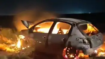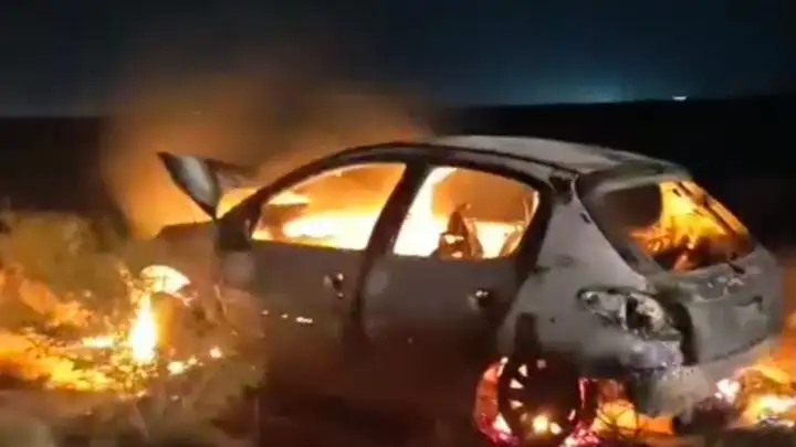 Durante la madrugada del domingo se vivieron momentos de terror en la Ruta 67, también llamada Del Petróleo, cuando un Peugeot 206 se incendió por completo.