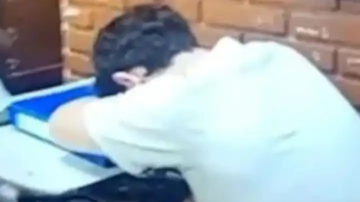 En la grabación se observa a varios estudiantes molestando al joven mientras lo filman con sus teléfonos. Él permanece en su banco, con la cabeza baja, sin responder.