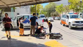 Según testigos del lugar, una moto impactó con una camioneta Amarok en la intersección, provocando graves lesiones al conductor del rodado menor.