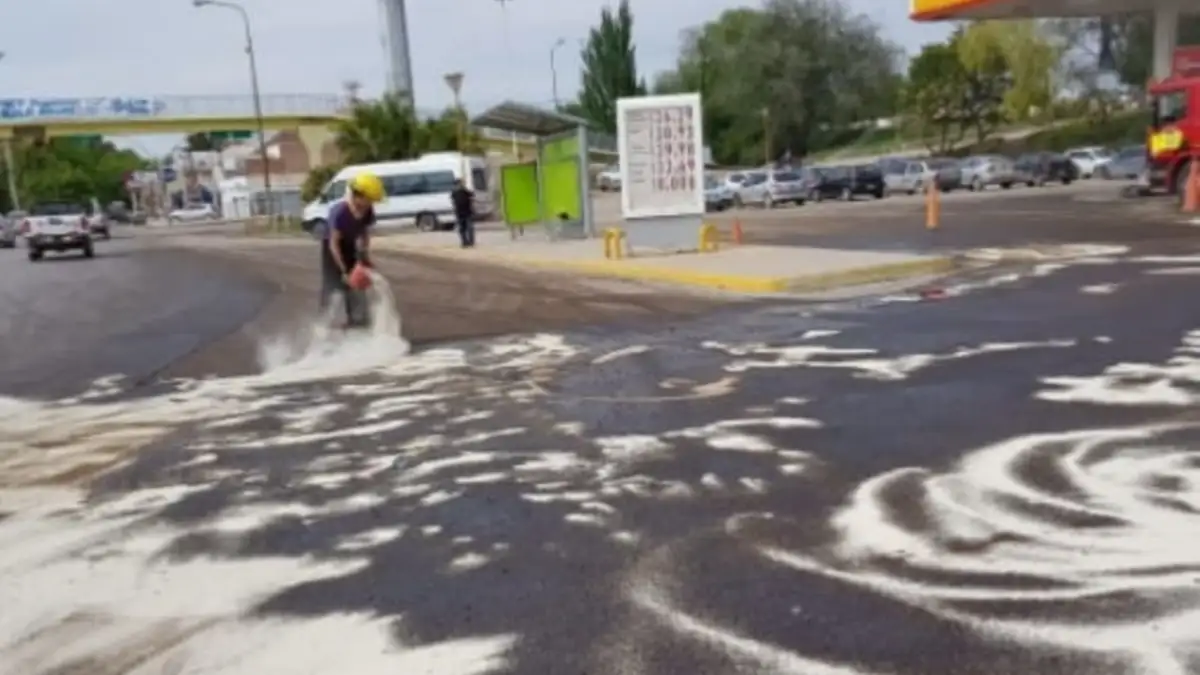 Bomberos debieron acudir al lugar y controlar la seguridad, neutralizando el líquido inflamable y despejando la zona para evitar accidentes.
