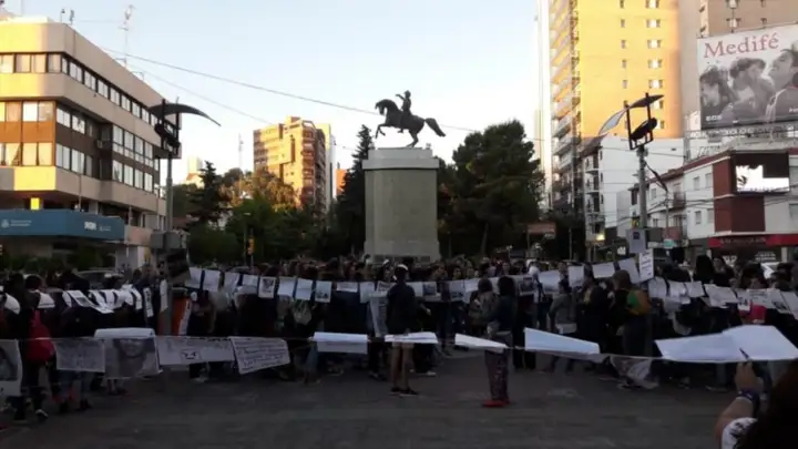 En una marcha de escrache, dolor y contención, las mujeres colocaron en una soga alrededor de 40 fotos de hombres que habían abusado o violado a alguna joven. En las fotos que llevaron las jóvenes se vio a reconocidas personas del ambiente, entre músicos de bandas, profesores, hijos de funcionarios político, entre otros.