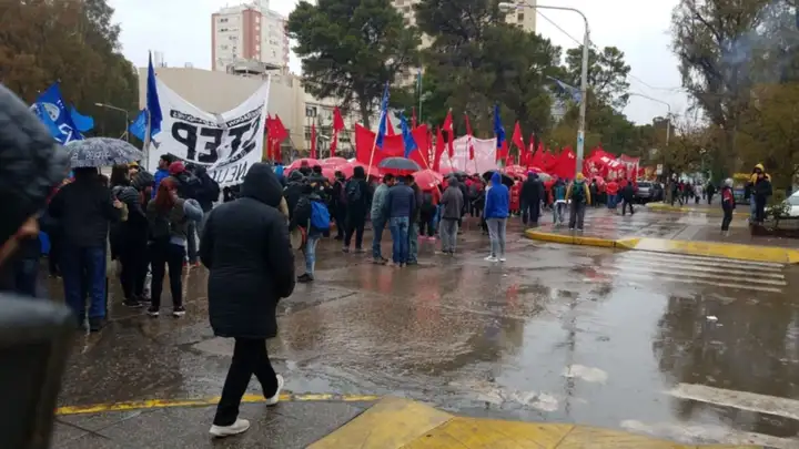 Bajo una lluvia persistente y baja temperatura, una multitudinaria movilización integrada por gremios, partidos políticos y organizaciones sociales, copó e centro de la ciudad de Neuquén.