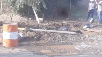En principio, por precaución desde el mediodía el personal de Camuzzi Gas del Sur cortó el servicio e intervino la Policía que impidió el tránsito en un radio de aproximadamente tres cuadras. Según la información recabada, el momento en el que la máquina retroexcavadora generó la rotura del gasoducto, se trabajaba en un pozo de agua. Al romper el caño, el gas comenzó a salir y provocó olas de agua que superaban los tres metros de altura por la fuerza que generó la fuga.