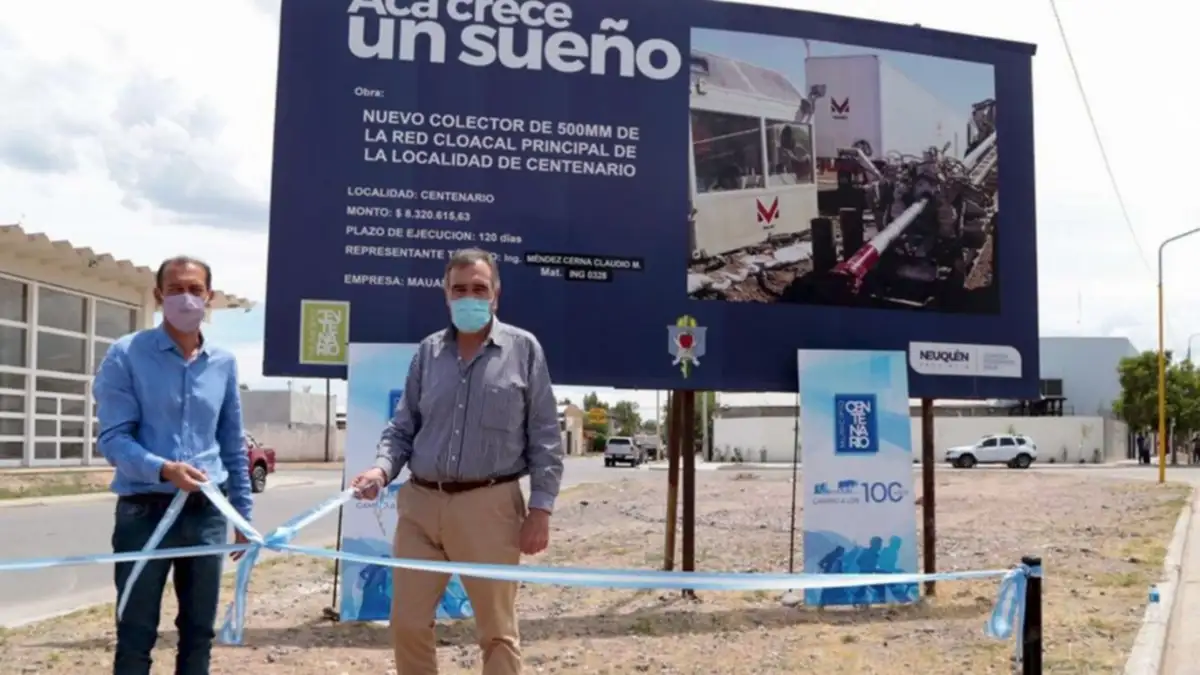 Como parte de lo que se denominó "aceleramiento de gestión", Omar Gutiérrez estuvo este viernes en Centenario, ciudad en la que, con el intendente Javier Bertoldi, inauguró una obra de saneamiento con beneficio directo para 60 familias, y mejora en general para la red sanitaria de la localidad.