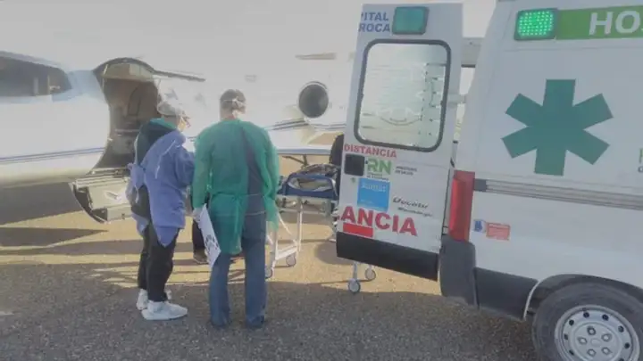 Se trató de un nene de dos años que vive en San Antonio Oeste pero que estaba internado en Viedma. Una ambulancia de Salud Pública aguardó en la pista para el traslado del paciente hasta la Unidad de Terapia Intensiva Pediátrica del López Lima que, a causa de la epidemia del coronavirus, transitoriamente fue trasladada al Hospital de Allen. El menor presenta una enfermedad neurológica aguda.