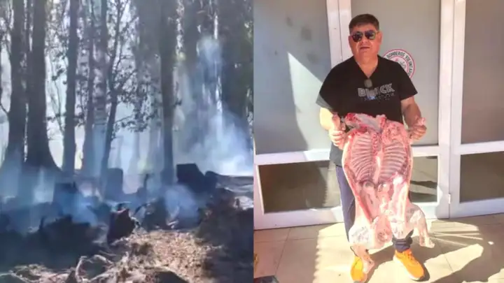 Dos días después, en un gesto de gratitud y reconocimiento por la tarea realizada, Francisco, dueño del camping Las Araucarias, se acercó al cuartel de bomberos para entregar un cordero de 14 kilos destinado a todo el personal.