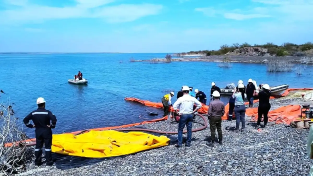 El Gobierno de Río Negro, a través del Departamento Provincial de Aguas (DPA), participó este jueves de un simulacro de recuperación de hidrocarburos en la estación de piscicultura del lago Casa de Piedra. La práctica recreó una mancha de petróleo mediante el uso de trazadores naturales (cáscaras de girasol), con el objetivo de evaluar escenarios críticos y fortalecer los protocolos de actuación vigentes en materia ambiental.