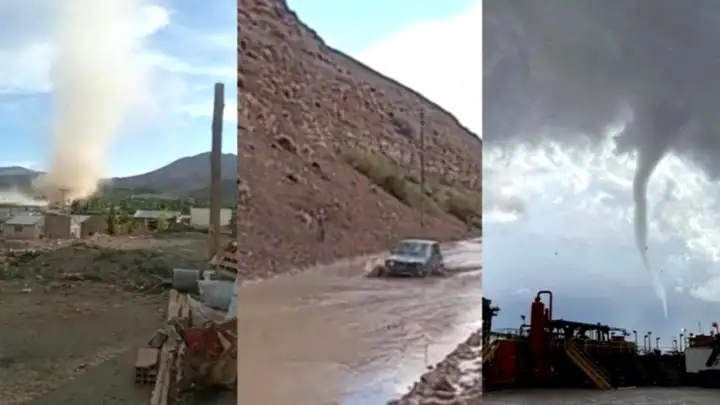 Otro fenómeno extraño se registró en la zona baja del Choique Rincón, cerca de Rincón de los Sauces, donde un remolino de viento levantó un tráiler de un grupo de camioneros y desplazó un tanque de agua en una base de crudo operada por YPF. Este remolino se produjo durante una tormenta eléctrica que afectó la zona norte de Neuquén, donde se encuentran varios campos petroleros. Los trabajadores del sector compartieron imágenes del episodio y alertaron sobre la importancia de interrumpir las actividades en condiciones meteorológicas tan extremas.