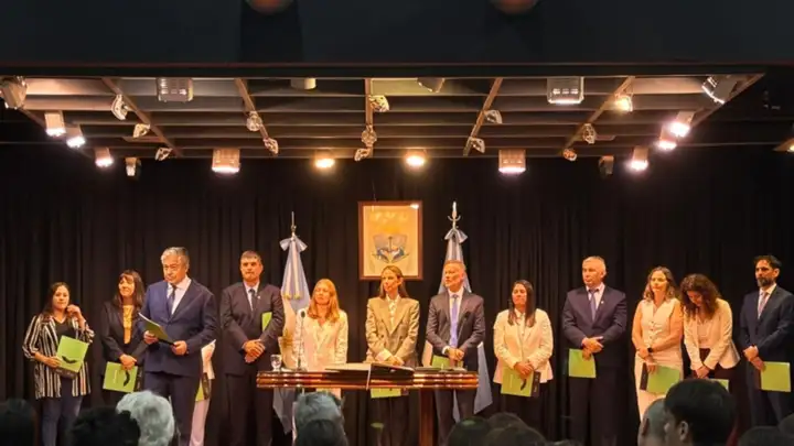 Eso es lo que pudo verse en la asunción de las nuevas autoridades, acto en el que el mandatario les tomó juramento tanto a las dos nuevas ministras: Josefina Codermatz (Juventud) y Tanya Bertoldi (Infraestructura), como a los secretarios; entre ellos, Gustavo Coatz (Interior), Rubén Etcheverry (Copade), María Fernanda Villone (Deportes) y Ana Servidio (Vivienda).