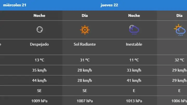 En Añelo se espera una jornada de cielo despejado que pasará a inestable hacia la noche. Las temperaturas oscilarán entre los 11 y los 37 grados. El viento ganará protagonismo en horas nocturnas, con ráfagas que podrían llegar a los 50 km/h.