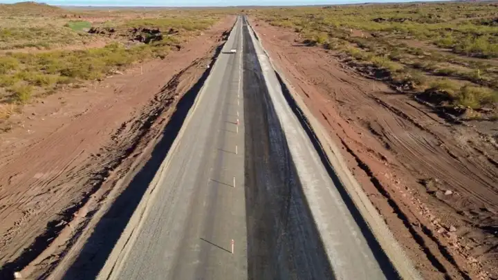 Repavimentación de la Ruta Provincial 6, en la región Vaca Muerta, entre las rutas 5 y 8. La obra abarca 54 kilómetros y una inversión cercana a $20.000 millones, con finalización prevista para diciembre de 2026.