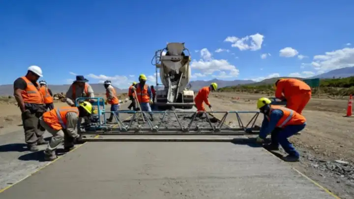 El proyecto emplea una base granular anticongelante de 24 cm, con una membrana de polietileno de 200 micrones bajo la losa, y una calzada de hormigón de 20 cm de espesor. Todo pensado para prolongar la vida útil de la ruta.