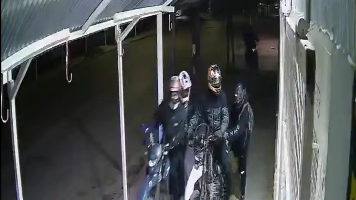 En las imágenes se puede observar cómo los delincuentes llegan al lugar de manera coordinada y con roles definidos. Entre los participantes se encontraba también una mujer. Todos mantenían los cascos puestos, una maniobra clave para evitar ser identificados mientras llevaban adelante el intento de asalto. Tras dañar cámaras y una reja, intentaron ingresar.