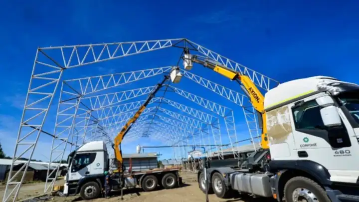 En paralelo, en Junín de los Andes ya se finalizó la obra civil de las bases de la descortezadora y se avanza con la construcción de la playa de acopio asociada a este equipo. Además, continúan los trabajos en la nave industrial donde se alojará la planta: ya se ejecutaron las 20 fundaciones de los pilares y se encuentran montados 12 de los 16 pórticos que conforman la estructura del edificio.