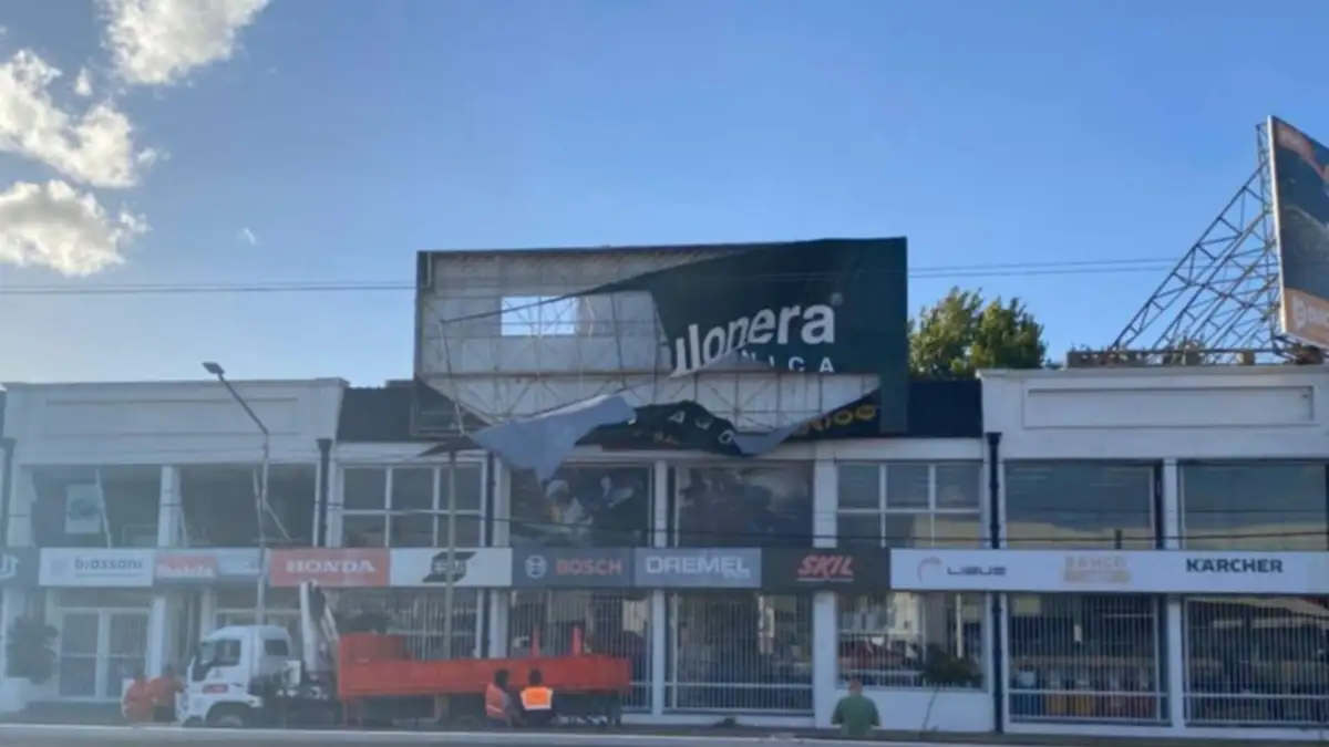 En distintos sectores de la ciudad cayeron árboles, ramas de gran porte, postes de servicios y carteles. Uno de los episodios más delicados ocurrió en calle Félix San Martín al 2000, donde una marquesina de aproximadamente cinco metros de alto por diez de largo quedó colgando y obligó a interrumpir el suministro eléctrico durante dos horas para poder retirarla con seguridad.