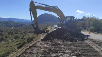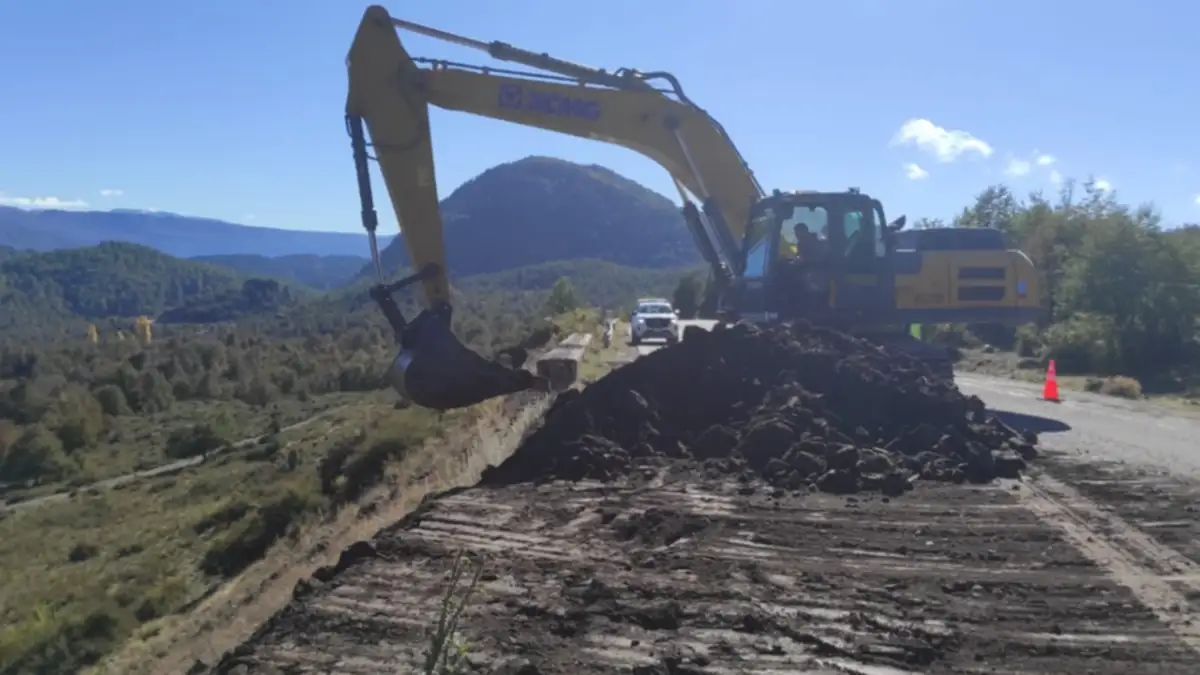 En la Ruta Nacional 40, tramo Siete Lagos, se están realizando tareas de recomposición de talud en el Mirador de Pil Pil, con traslado de material rocoso desde Río Hermoso.