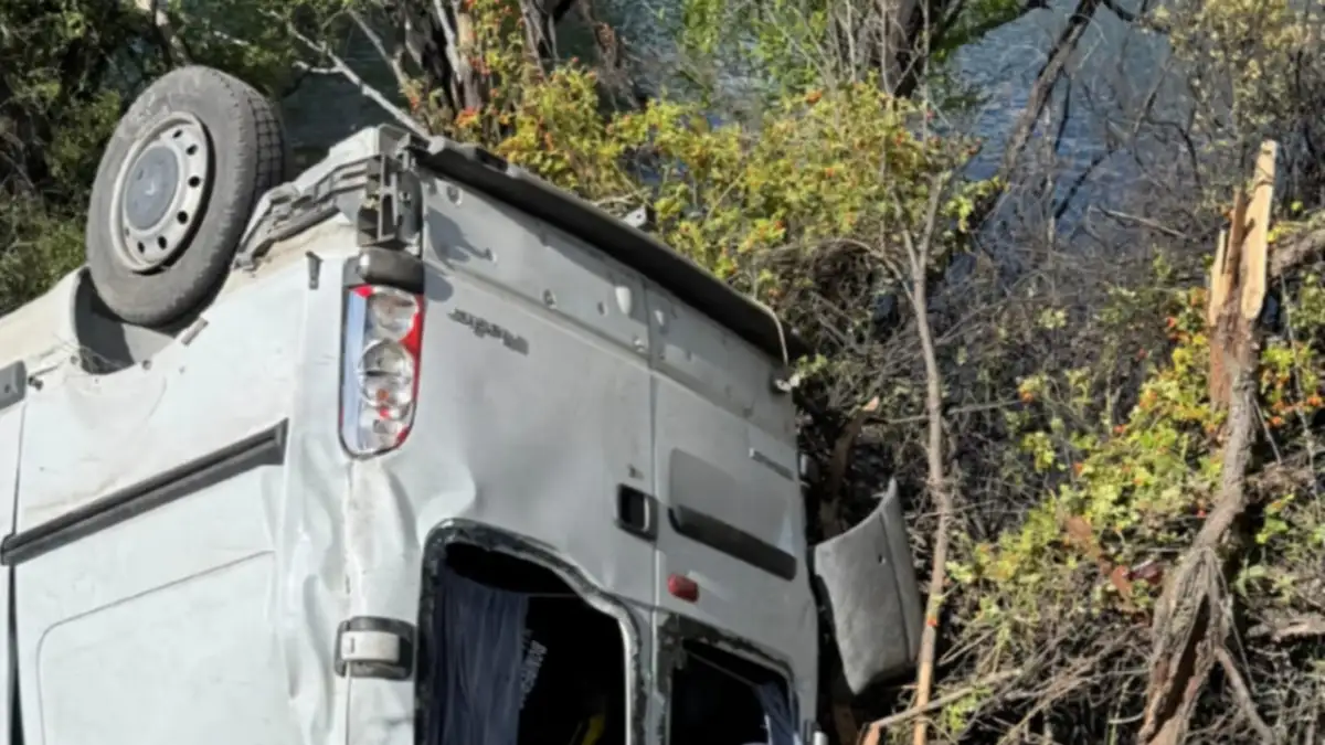 Cuando los bomberos de Villa La Angostura llegaron al lugar tras un aviso constataron que una camioneta tipo trafic había volcado y quedado detenida sobre una pendiente pronunciada, varios metros por debajo del nivel de la calzada. El rodado estuvo a punto de terminar dentro del río, pero fue frenado por árboles del sector.
