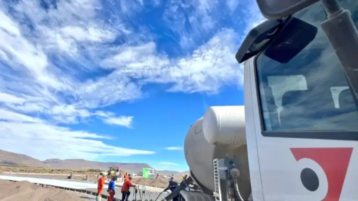 El proyecto en ejecución contempla una base granular drenante anticongelante de 24 centímetros, una membrana de polietileno de 200 micrones bajo la losa de hormigón de 20 centímetros de espesor, y la incorporación de microfibras en el hormigón para aumentar la resistencia del pavimento y reducir la aparición de fisuras, garantizando mayor durabilidad y transitabilidad ante las exigencias del clima y la altitud.