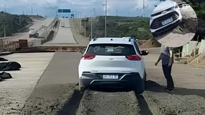 “El conductor no respetó la señalización que indicaba los trabajos”, indicaron desde el medio trasandino, mientras circulaban imágenes y videos del momento en que el auto queda inmovilizado sobre la superficie aún sin fraguar.