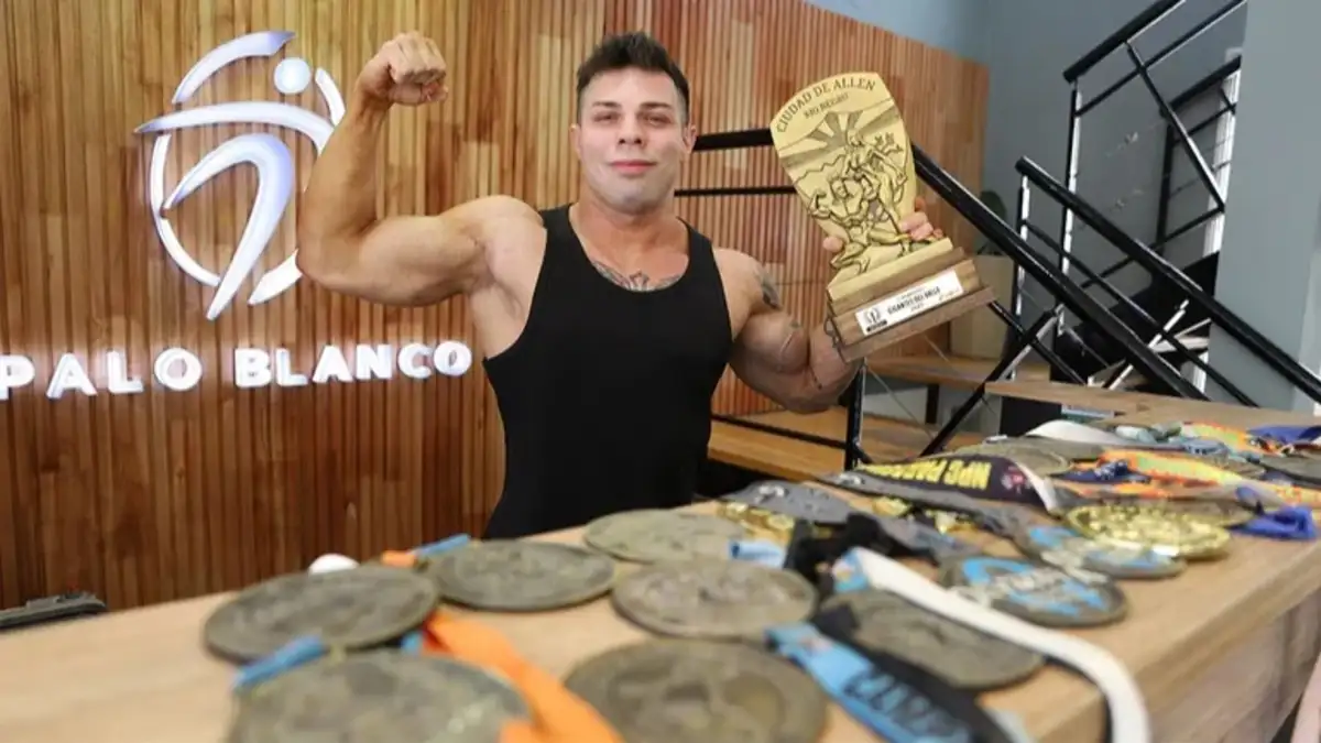“A fines de 2021 hicieron un torneo acá en Neuquén, decidí presentarme y lo gané”, relató en AM550. Ese triunfo le abrió las puertas al Campeonato Argentino en Buenos Aires, donde obtuvo el subcampeonato. Desde entonces, participa de torneos nacionales de manera constante, entre dos y tres por año y ya acumula nueve títulos nacionales y cuatro podios sudamericanos. En 2024 viajó a Paraguay para competir internacionalmente y obtuvo el segundo puesto, un logro que considera clave en su evolución tanto física como personal.